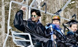 college grad ski lif fist