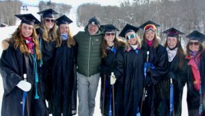 Middlebury College President Ian Baucom, with some of the Feb grads at the Snowbowl_ Feb 5, 2026 Share this story: