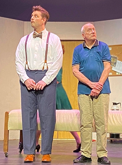 Much in the spirit of British playwright Michael Frayn’s raucous play-within-a-play “Noises Off” if the main characters were spins on the two leads of Edward Albee’s notorious and anything-but-funny “Who’s Afraid of Virginia Woolf?”, the mile-a-minute “Moon Over Buffalo” concerns an all-in-the-family acting troupe led by two aging blowhards, George and Charlotte. The couple are respectively played at Middlebury’s Town Hall Theater to great antic effect by Carl Engvall of Bristol and Suzanna Miller of North Ferrisburgh. (In a serious note, Engvall dedicated his performance in the program notes to his late brother Bert.)
