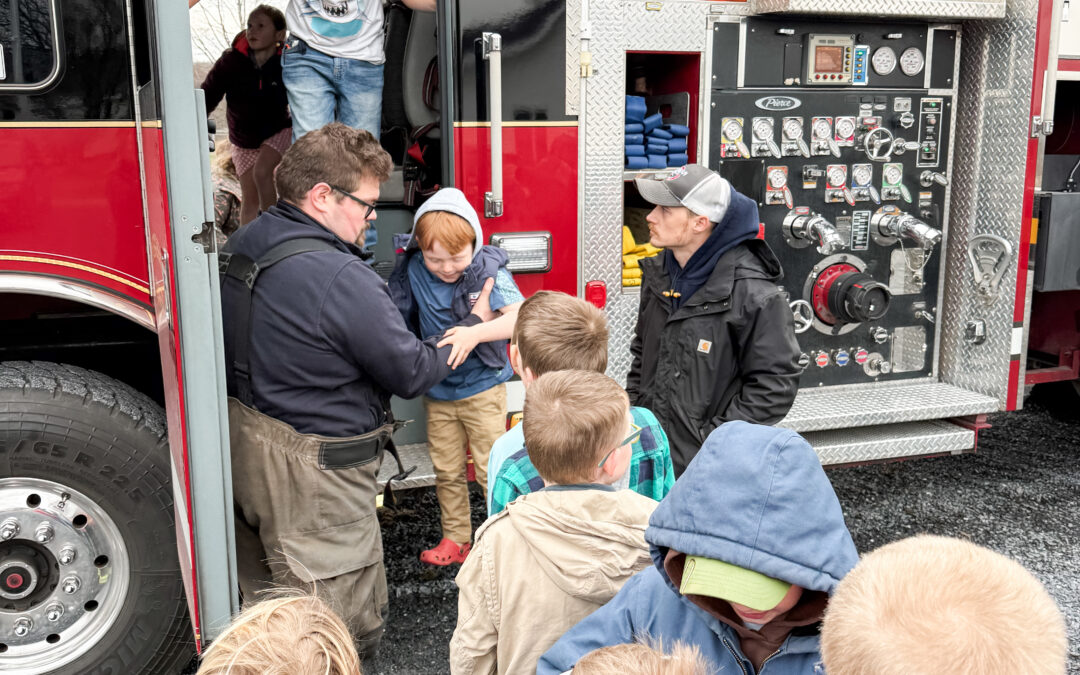 Three volunteer firefighters from the Vergennes Volunteer Fire Department brought the truck to the co-op’s final gathering of the school year.