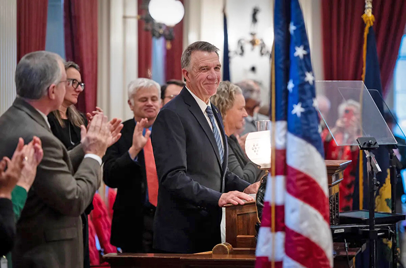 GOV. PHIL SCOTT delivers his 2025 inaugural address at the Statehouse in Montpelier on Thursday, Jan. 9.