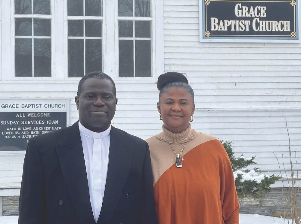 PASTOR JENNING BOATENG, left, pictured here with his wife Vivian, has taken the helm as interim pastor at Middlebury’s Grace Baptist Church