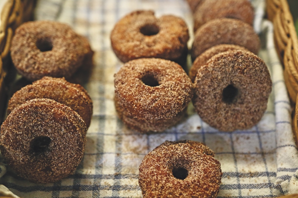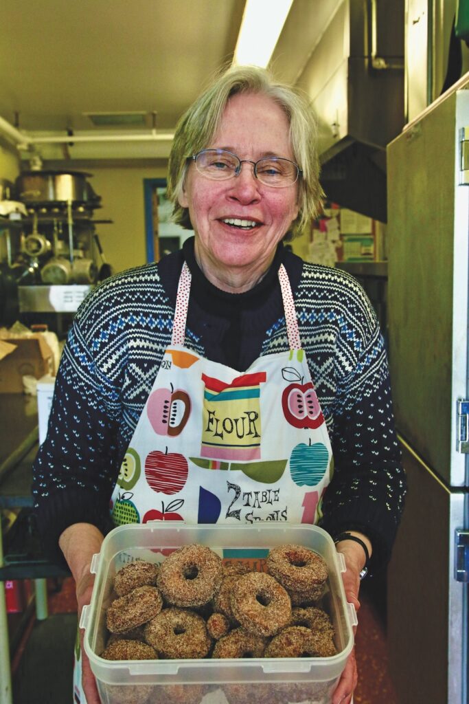 - ELSA GILBERTSON SERVES up some of her homemade doughnuts. Independent photo/Steve James