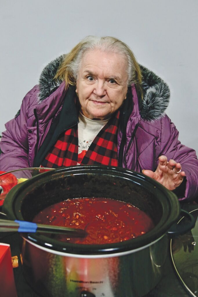 - PATTI BARNES KEEPS an eye on the chili made by her son. Independent photo/Steve James