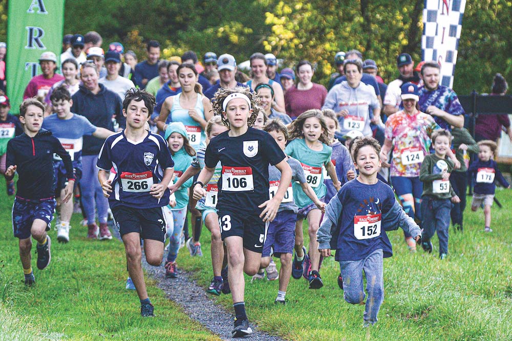 - TREKKERS OF ALL ages participated in Sunday’s races, which included a 2-mile family fun run that included lots of kids, a full 19-mile loop, and 10K and 5K runs. Photo courtesy of Middlebury Area Land Trust