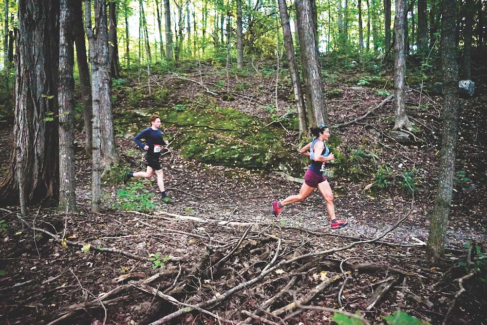 - FOLKS RUNNING THROUGH the woods in last weekend’s TAM Trek. Photo courtesy of Middlebury Area Land Trust