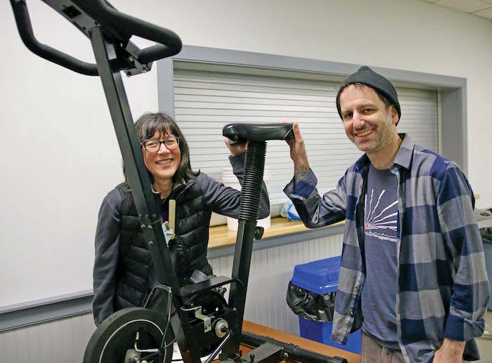 - THE ADDISON COUNTY Solid Waste Management District hosted its “Repair Fair” this past Saturday at the Middlebury American Legion headquarters, an event that saw at least 95 area residents turn out to get household items fixed by 23 savvy volunteer “fixers.” Carrie Macfarlane and Jeff Margolis brought in a stationary bike that needed some tweaks. Independent photo/Steve James