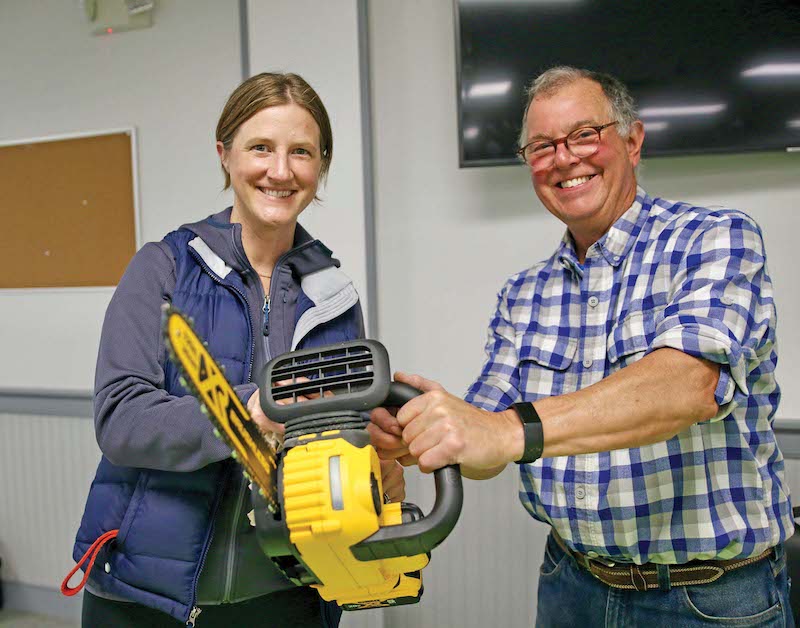 - THE ADDISON COUNTY Solid Waste Management District hosted its “Repair Fair” this past Saturday at the Middlebury American Legion headquarters, an event that saw at least 95 area residents turn out to get household items fixed by 23 savvy volunteer “fixers.” The reason behind the fair was to prevent items from ending up in landfills. Courtney Krahn of Cornwall gets her chainsaw fixed by Dan Rossignol of Addison. Independent photo/Steve James