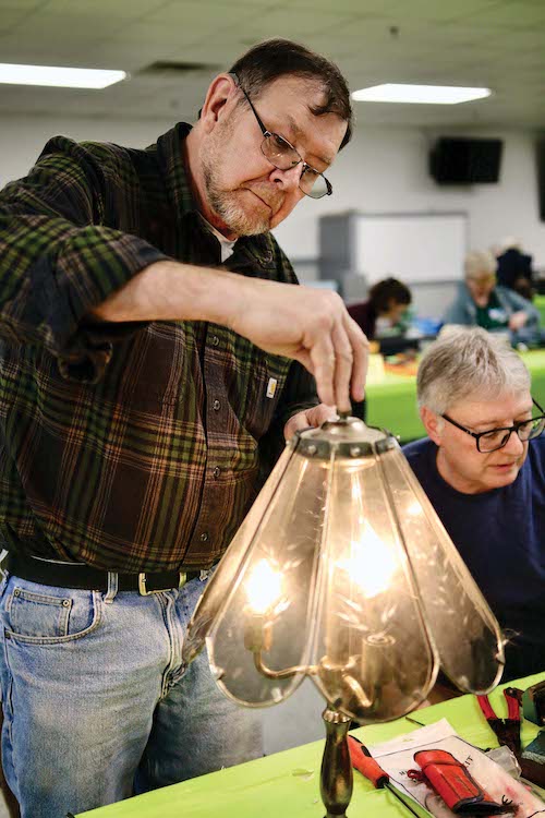 - THE ADDISON COUNTY Solid Waste Management District hosted its “Repair Fair” this past Saturday at the Middlebury American Legion headquarters, an event that saw at least 95 area residents turn out to get household items fixed by 23 savvy volunteer “fixers.” Retired electrician Jeff Cathcart performs surgery on a lamp. Independent photo/Steve James