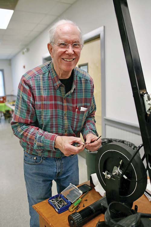 - THE ADDISON COUNTY Solid Waste Management District hosted its “Repair Fair” this past Saturday at the Middlebury American Legion headquarters, an event that saw at least 95 area residents turn out to get household items fixed by 23 savvy volunteer “fixers.” Former bike shop owner Richard McKerr delivers some TLC to a stationary bike. Independent photo/Steve James