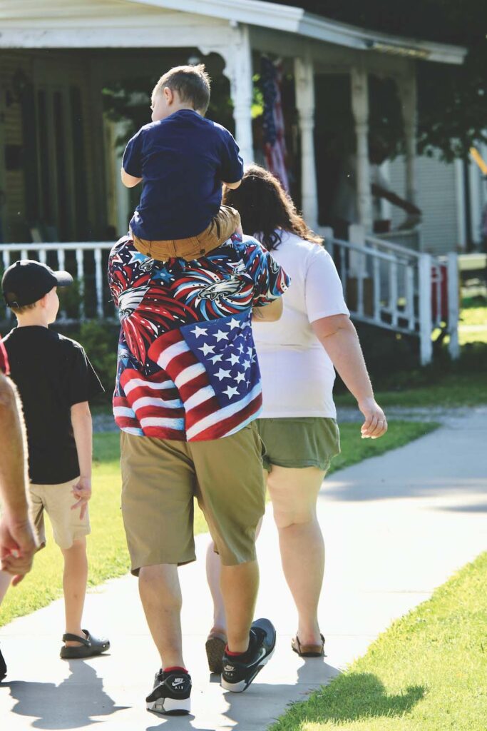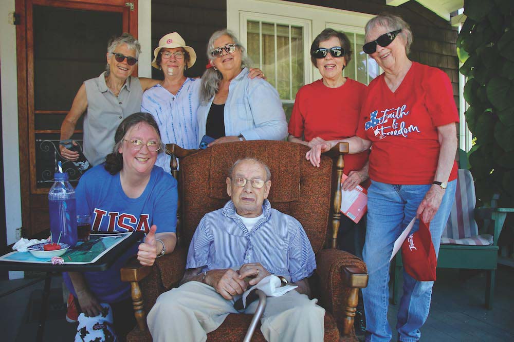 - JESSE HANSON IS surrounded by members of his family and an aide as they all enjoy watching the Fourth of July parade pass by Hanson’s Mountain Street home in Bristol this past Thursday. Hanson has seen a lot of parades; this year he celebrated his 100th birthday. Independent photo/Steve James