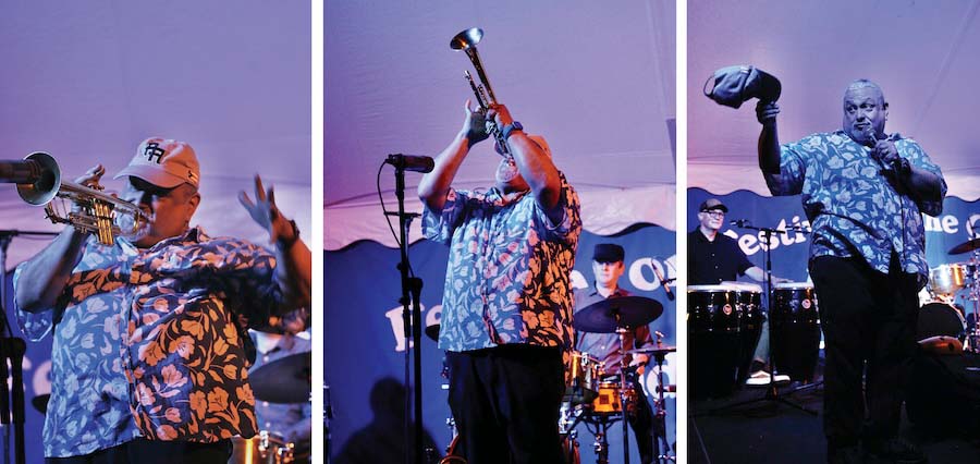- Ray Vega tooting his horn and sharing his singing voice during Monday’s performance of his namesake Afro-Caribbean Jazz Ensemble. Independent photos/Steve James