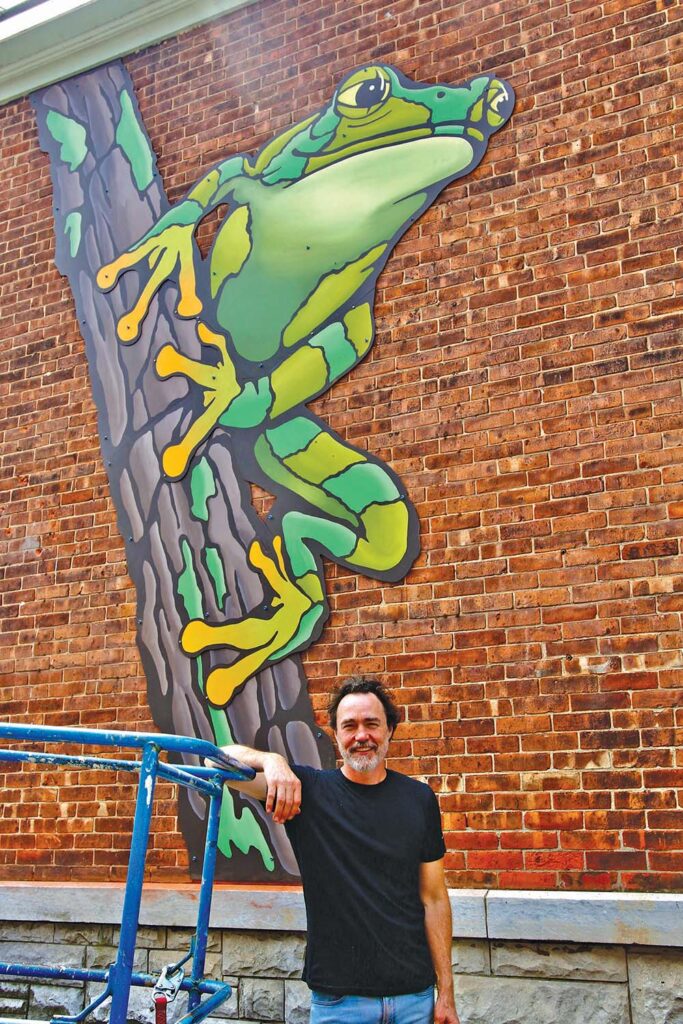 - Artist Matt Heywood recently installed this frog mural on the Mill Street facade of the Middlebury Shop in Middlebury. The artwork was a collaborative effort between local artists, including some Middlebury Union High School students, and is designed to direct folks to the Frog Hollow district in the downtown. Independent photo/Steve James