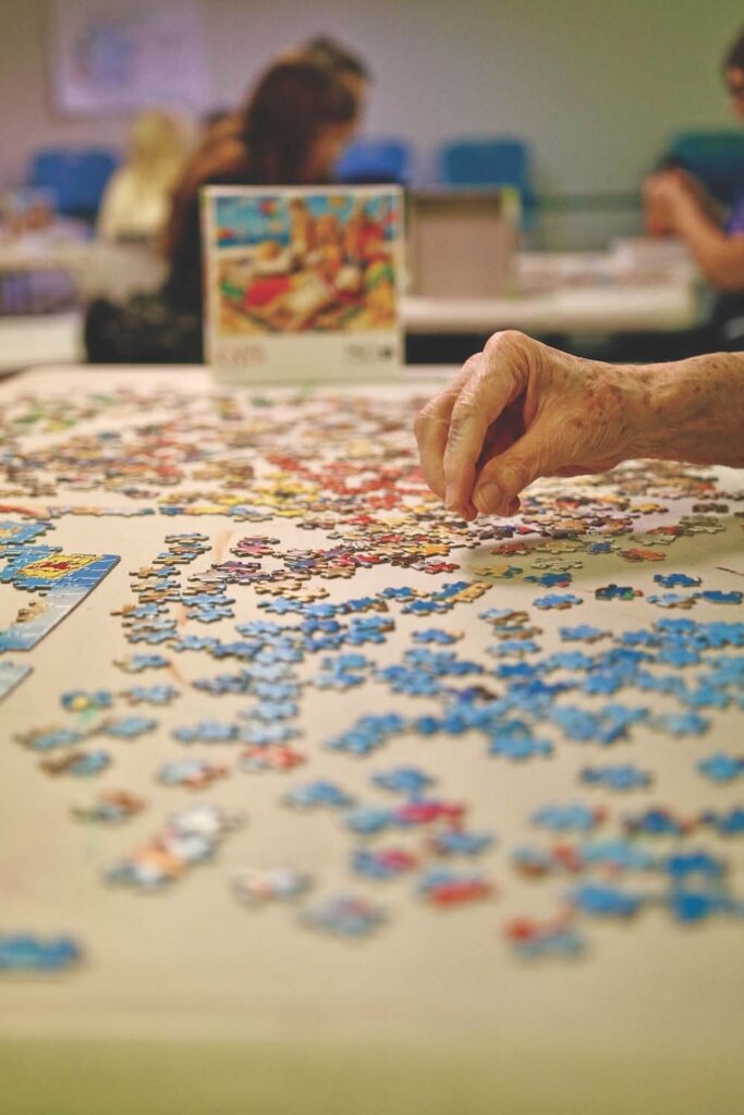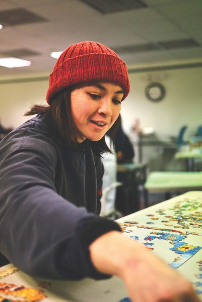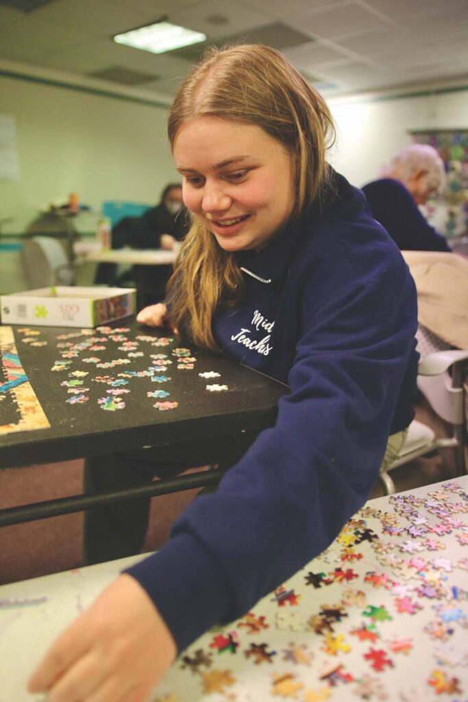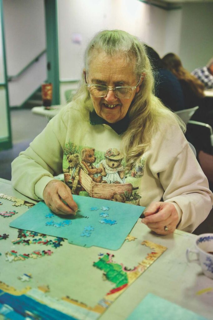 - MIDDLEBURY’S PHYLLIS BOWDISH enjoys puzzling at Ilsley Library’s Great Puzzle Challenge. Independent photo/Steve James