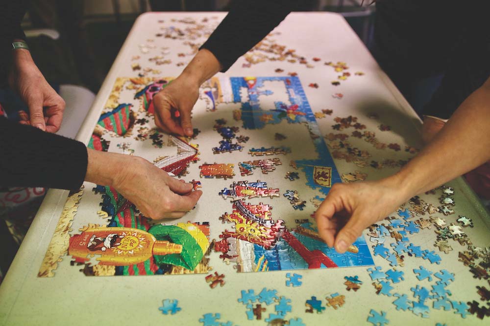 - THE POSSIBILITIES SEEM limitless as a hand hovers over the hundreds of puzzle pieces spread about before a participant in Saturday’s Great Puzzle Challenge at Ilsley Public Library. Around a dozen teams took part. Independent photo/Steve James