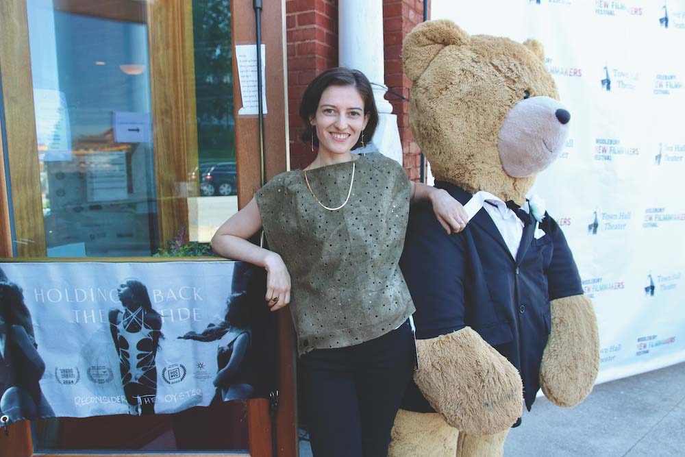 - “HOLDING BACK THE Tide” director Emily Packer is happy to meet the Teddy outside THT. Independent photo/Steve James