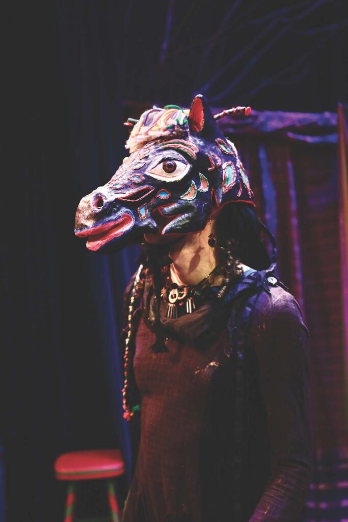 - AARON MARCOS WEARS a horse head in “Night Fires,” which will be staged this weekend on Friday through Sunday at Town Hall Theater. Independent photo/Steve James