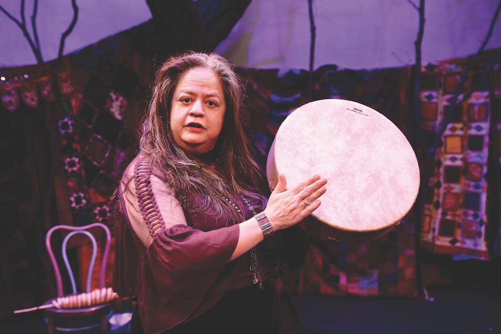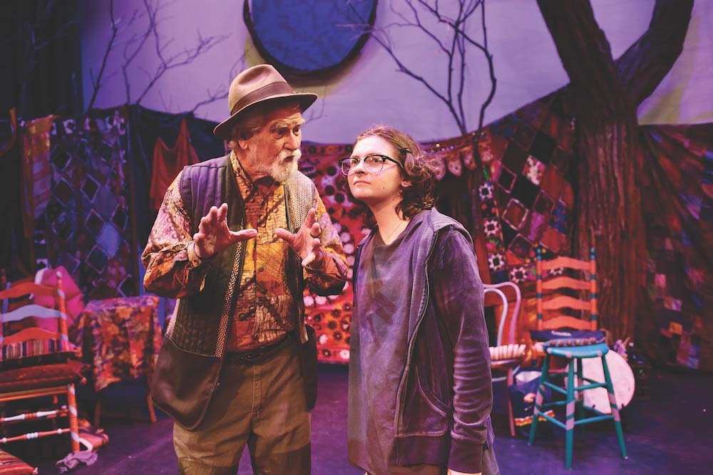 - TOM VERNER TELLS stories to Es Voorhees in “Night Fires,” which will be staged this weekend on Friday through Sunday at Town Hall Theater. Independent photo/Steve James