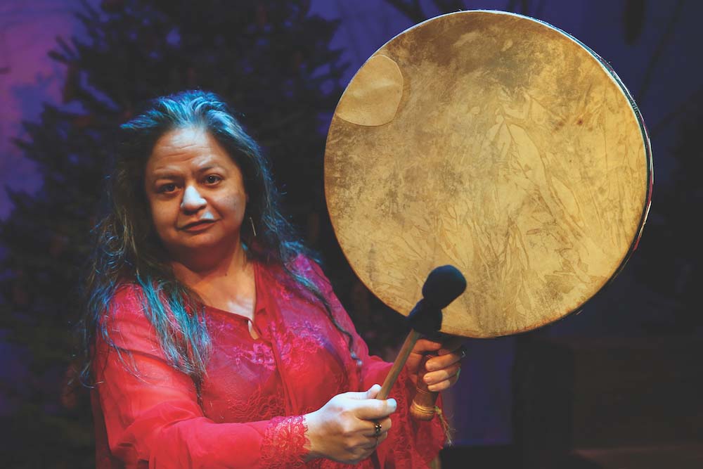 ANNIE NESSEN BANGS the gong in “Night Fires,” which runs at Town Hall Theater Dec. 15-17. Independent photo/Steve James