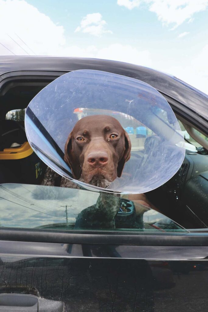 - BARROW, A GERMAN short-haired pointer, who just went to the vet for a surgical snip, looks pensively out of Chris Reinfurt’s car. Independent photo / Steve James