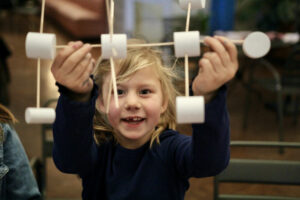 Josephine Gowen, 6, of Midlebury, shows what she created