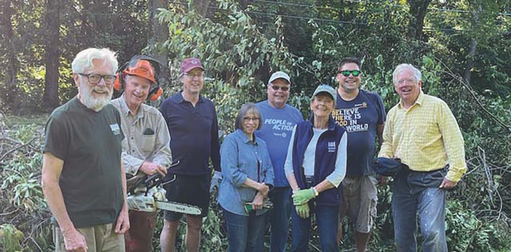 - MEMBERS OF THE Rotary Club of Middlebury, aided by three members of the Vermont Old Cemetery Association from Burlington, on July 20 gathered debris cut by the town’s public works crew at the Washington Street Cemetery. Once the living vegetation is under control, work to upright and clean the stones will begin next year. Volunteer workers shown here are, left to right, Tom McNugh, Larry Jones, Alex Wolff, Rachel Sherman, Paul Horn, Gabriel Karsch, Ben Fuller and David Clark.