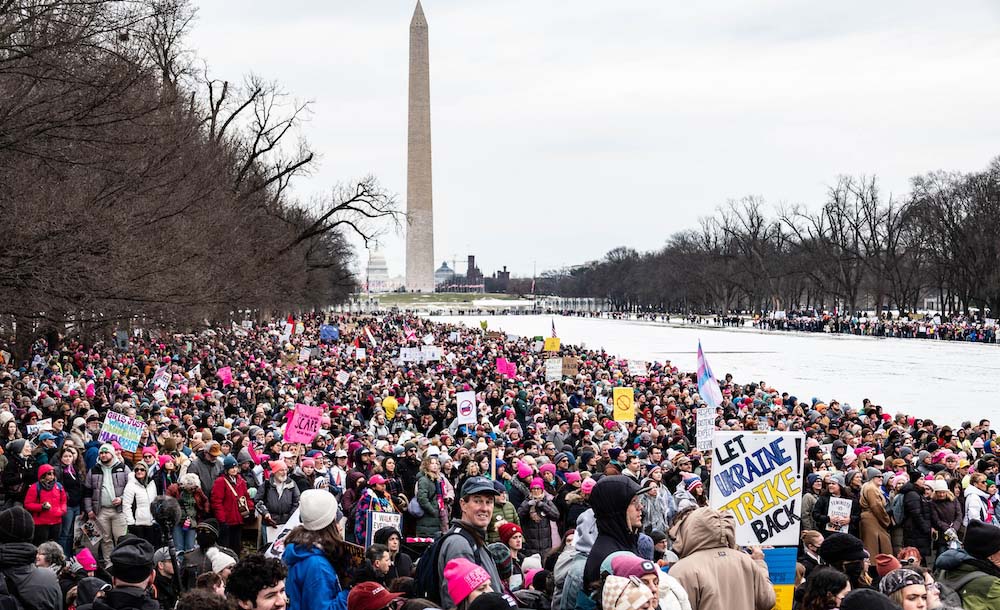 - THE THOUSANDS OF protesters, including some Addison County folks, who came to D.C. just before last week’s inauguration made their way in three big groups to the Lincoln Memorial Reflecting Pool for speeches from community leaders. Photo by Jim Mendell