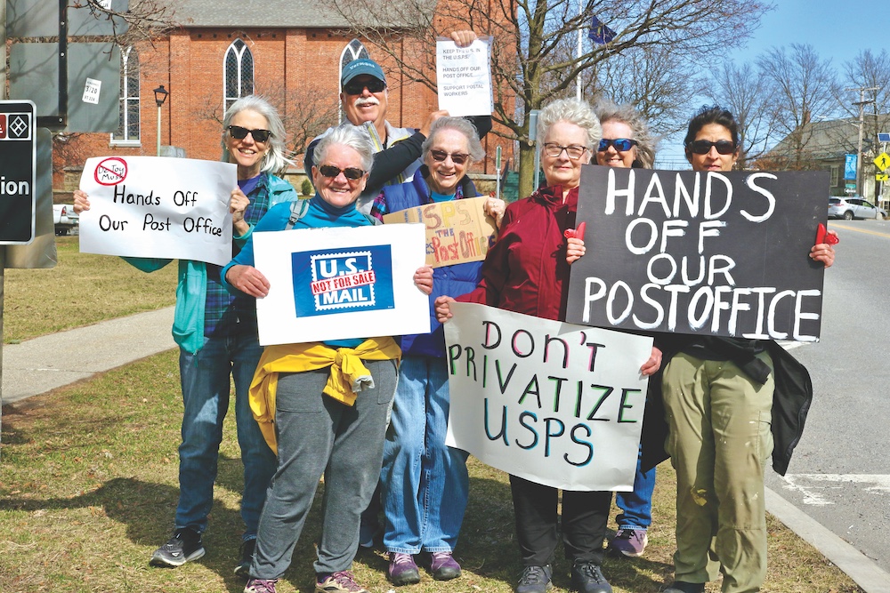 - A WAVE OF protests against possible changes at the U.S. Postal Services has been sweeping the country, and this past Thursday, March 20, it crested in Vergennes. That afternoon, a large group of people outside the Vergennes Post Office held homemade signs decrying possible plans by President Trump to shrink and possibly privatize the USPS. This hard core of protesters was still there when the newspaper showed up. Independent photo/Steve James