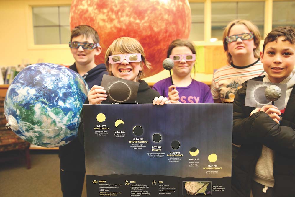 - THE APRIL 8 total solar eclipse is less than two weeks away, and students at Mary Hogan Elementary School are getting ready for it. Pupils spent time learning about the once-in-a-lifetime astronomical event this past Wednesday, March 20, with the help of some kid-sized models. Independent photo/Steve James