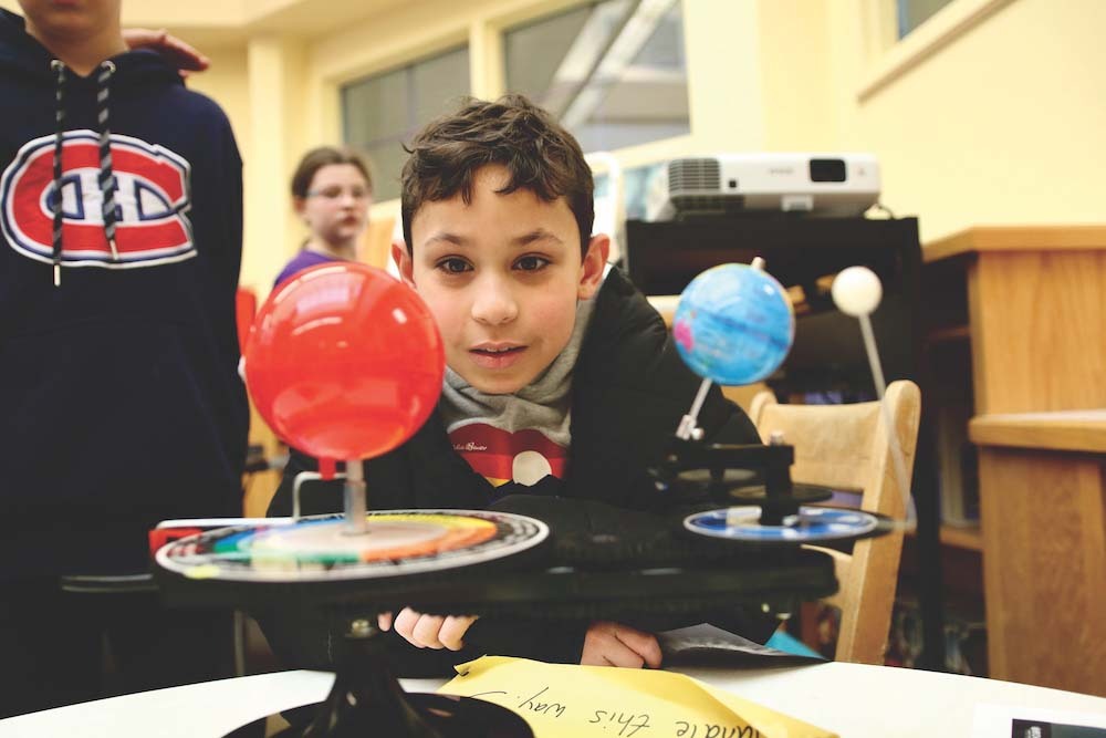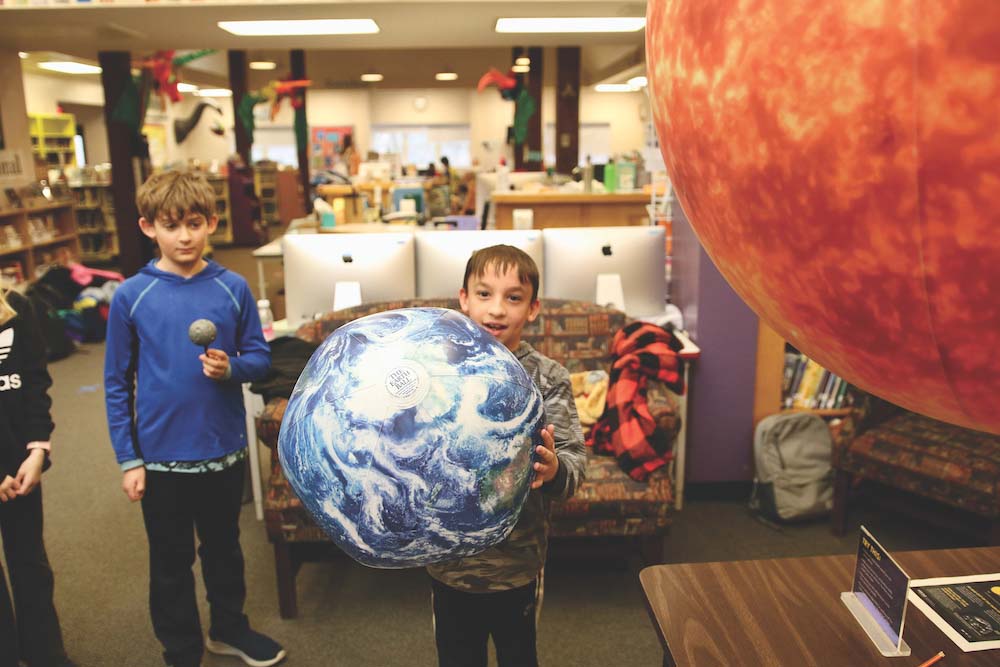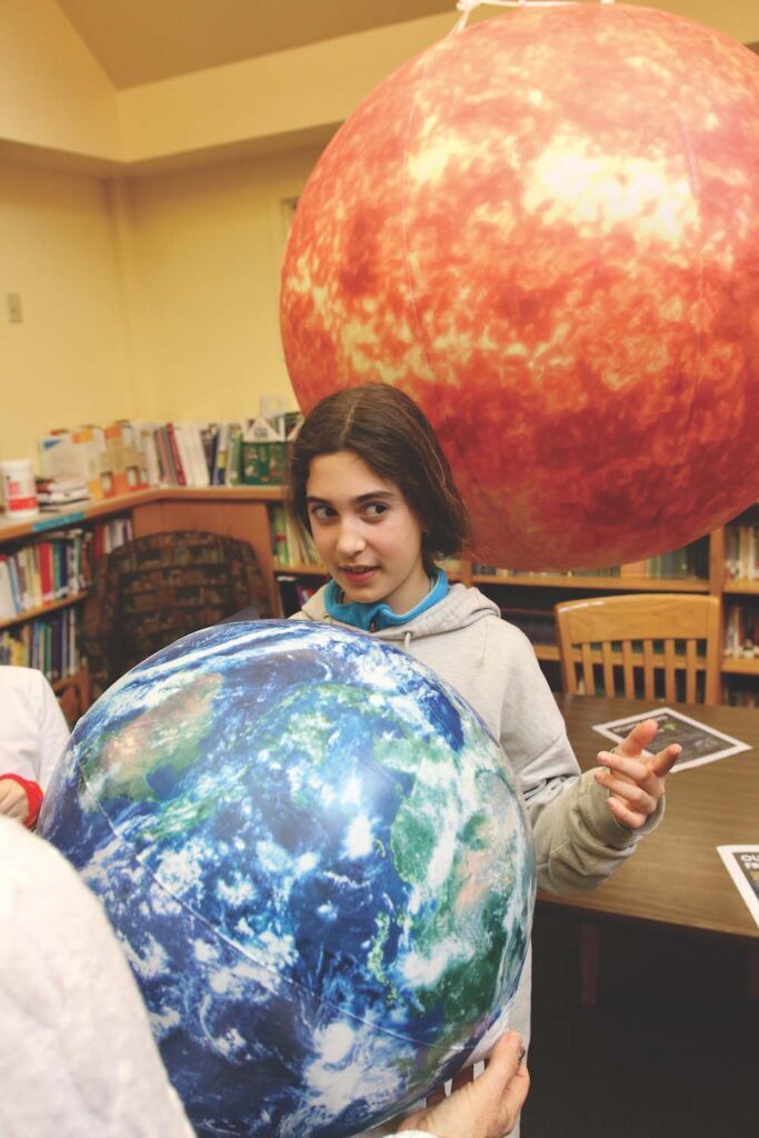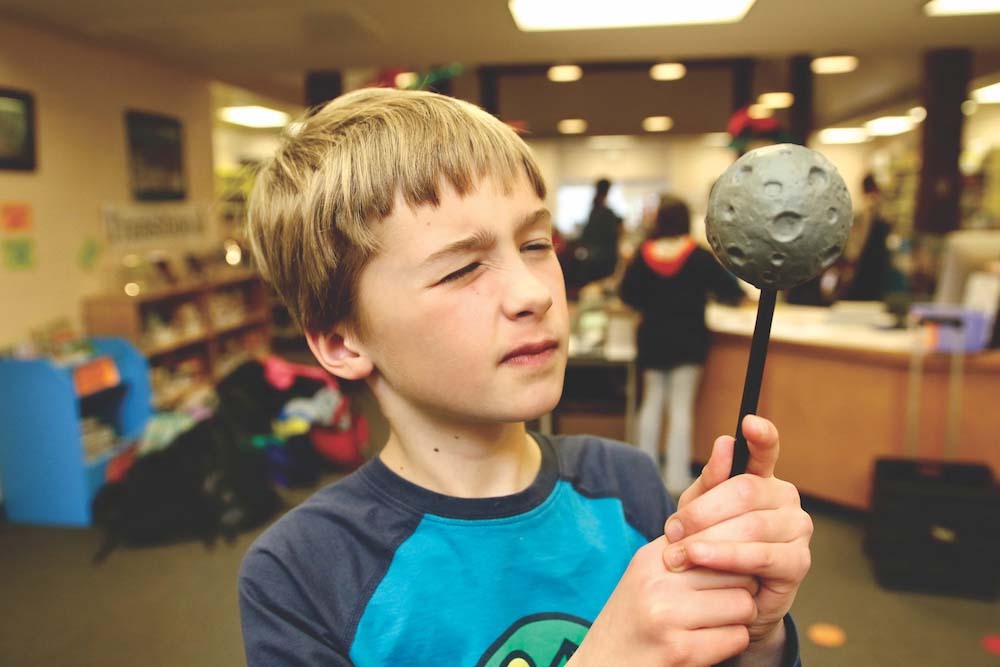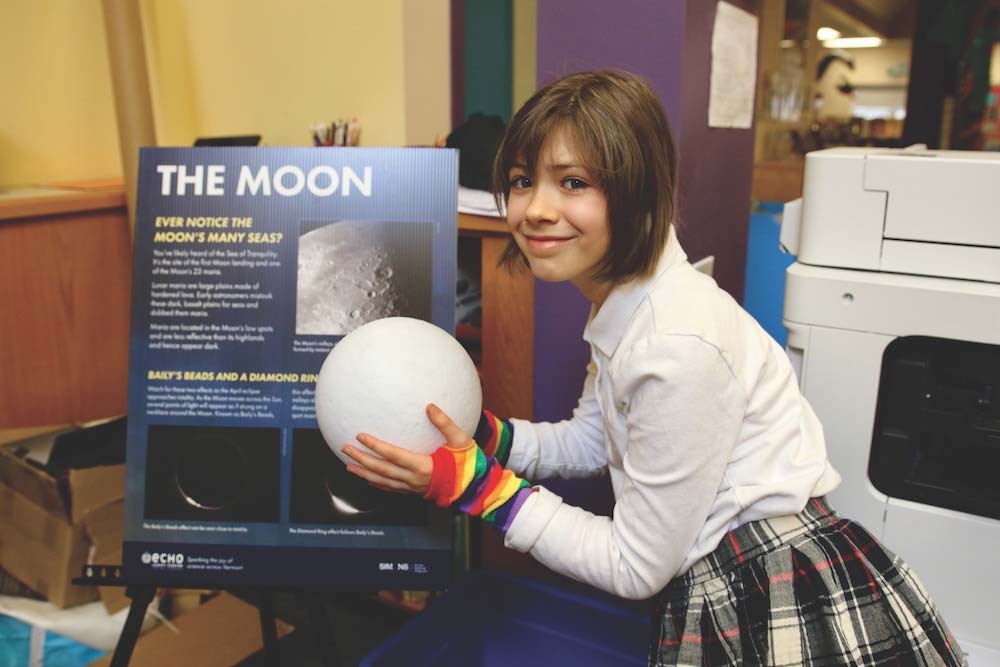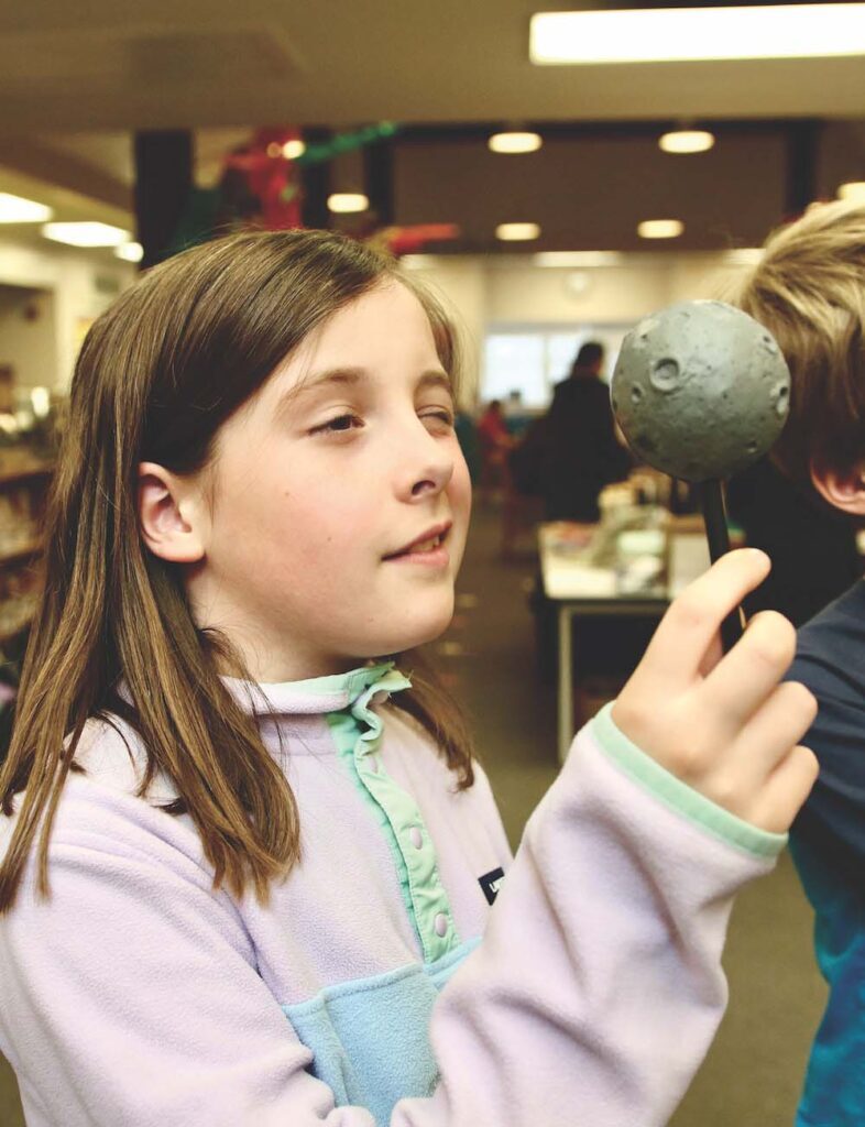- FOURTH-GRADER MATILDA Boyce has the moon in her hands. Independent photo/Steve James