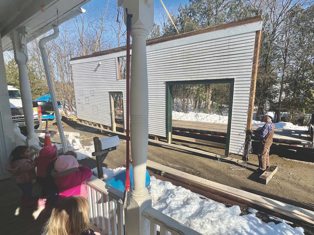 - CONTRACTOR LOU NOP and his helpers spent several days this past week dismantling a 130-year- old carriage barn on the Otter Creek Child Center property at 150 Weybridge St. in Middlebury. The barn will be reassembled at Sunrise Orchards in Cornwall, where it will serve as an event/retail venue. Photos by Emily May