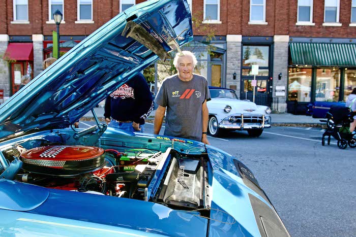 - Gary Payne, of Bridport, at the Middlebury Car Show and Fall Festival with the 1970 Plymouth Super Bird that he rebuilt. Independent photo/Steve James