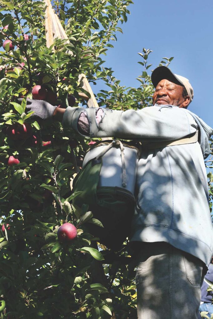 - A SUNRISE ORCHARDS worker collects apples from a tree at the Cornwall orchard. Local apple growers have reported a plentiful crop this fall, following a challenging growing season filled with weather-related obstacles in 2023. Independent photo/Steve James