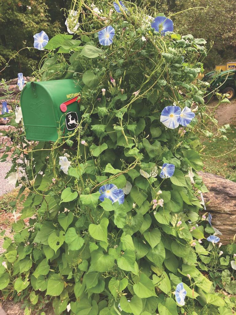 - WE KNOW THE U.S. Postal Services prides itself on not being deterred by snow, rain nor dark of night, but how about a mass of morning glories smothering this mailbox in Middlebury? Independent photo/John S. McCright
