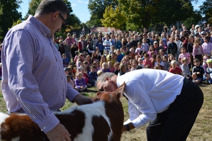 - BRISTOL ELEMENTARY SCHOOL administrators were tasked with planting a kiss on Whiskey the cow as part of a “Kiss the Cow” challenge held at the school last week. Among those to take part were Assistant Principal Bill Huggett. Photo by Nicole Heffernan