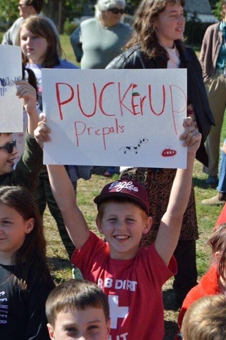 - STUDENTS AT BRISTOL Elementary School made signs to encourage school administrators as they completed a “Kiss the Cow” challenge last week. Photo by Nicole Heffernan