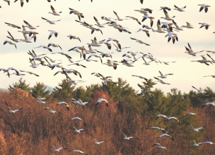 - WE LOVE TO watch the comings and goings of birds during the fall migration, but the Champlain Valley is blessed with a superabundance of migrating snow geese, which come through in such numbers that they hold a special place in our hearts. The wide open fields and water features around the Dead Creek Wildlife Management Area in Addison is so popular with the geese that the state built a special area along Route 17 where photographers could pull off and capture stunning photos of some of the thousands of birds that pass through every fall.