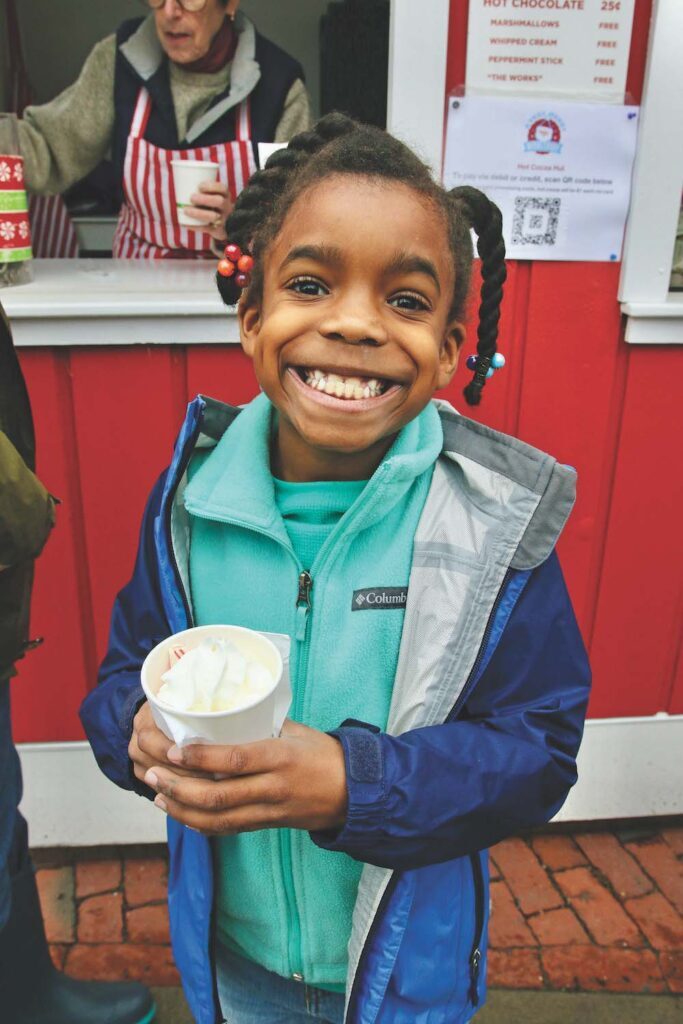 - AMAYA MORGAN OF Panton is quite pleased to get a warm, sweet drink from the Hot Cocoa Hut in Middlebury’s Cannon Park this past Saturday during the Very Merry Middlebury activities. Independent photo/Steve James