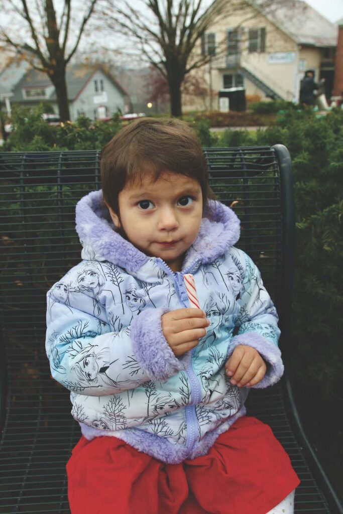 - IVY GONZALEZ FOSTER, 2, takes a moment to savor her candy cane. Independent photo/Steve James