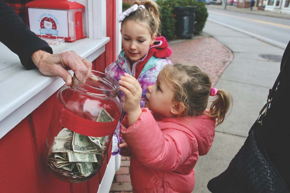 - SISTERS FINLEIGH AND Elbie Jones drop some money in the tip jar at Middlebury’s Hot Cocoa Hut on Saturday. Independent photo/Steve James