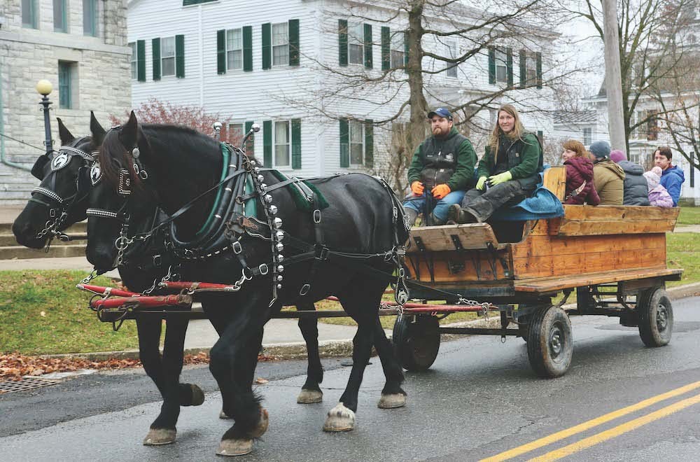 - FOLKS CAUGHT HORSE-drawn wagon rides around downtown Middlebury on Saturday to kick off the Very Merry Middlebury events. Independent photo/Steve James