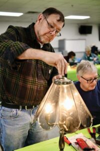 Repair fair Many hands make light work… Jeff Cathcart, a retired electrician from Goshen, fixed Cindy Watrous_ lamp Apr 26, 2024 Share this story: