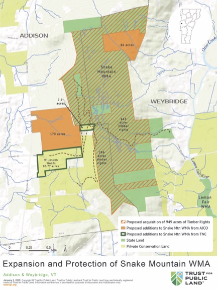 A major land and timber-rights transaction approved — or at least not opposed — by selectboards in Weybridge and Addison has paved the way for the transfer of hundreds of acres of land and timber rights on Snake Mountain in both Addison and Weybridge to the Vermont Department of Fish and Wildlife.