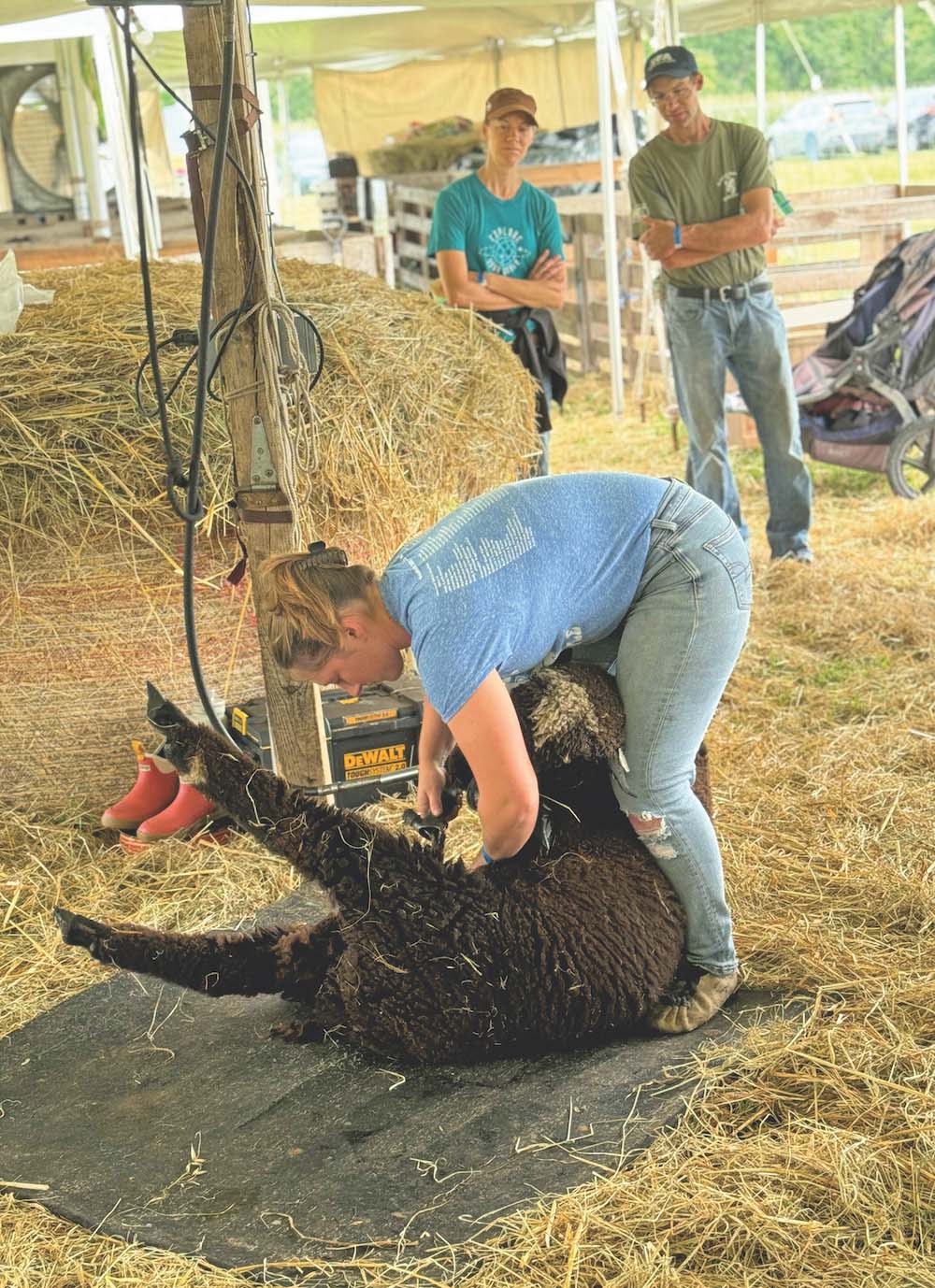 Shearing sheep at the fair is hard work
