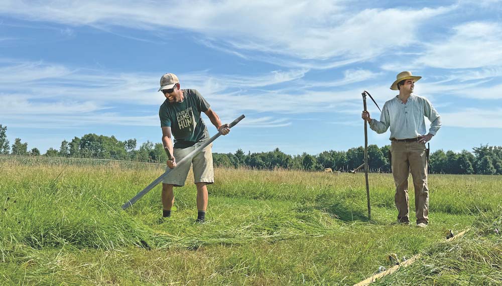 Hand mowing draws all ages