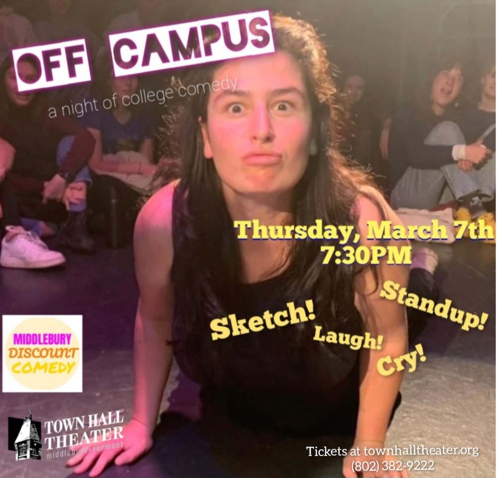 The college’s comedians will be coming out of hiding on campus to perform their show “Off Campus,” off campus and at the Town Hall Theater for Middlebury’s public.